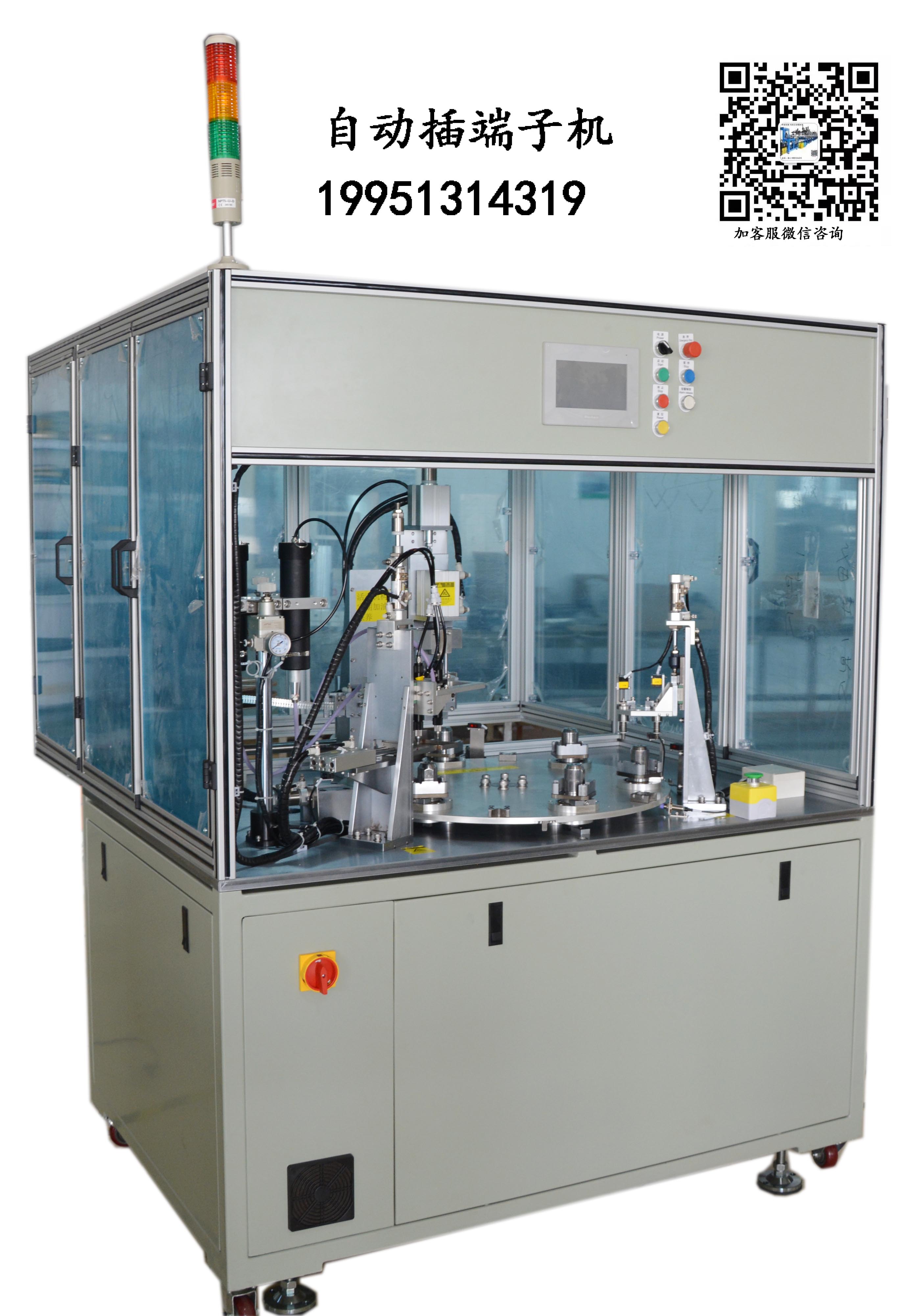 无刷自动插端子主要用于无刷定子滴胶插端子剪线测试,设备构成包含:端子槽滴胶、插端子剪线、定子测试(通断测试、耐压测试、参数测试),以上构成内容根据不同要求选择搭配,其中端子分散料和盘料,散料使用振动盘上料,盘料配机械上料机构。定子槽滴胶采用精密调压阀控制,可以精准控制胶量大小。定子测试基础功能检测端子通断,可以配置耐压仪和参数仪。
